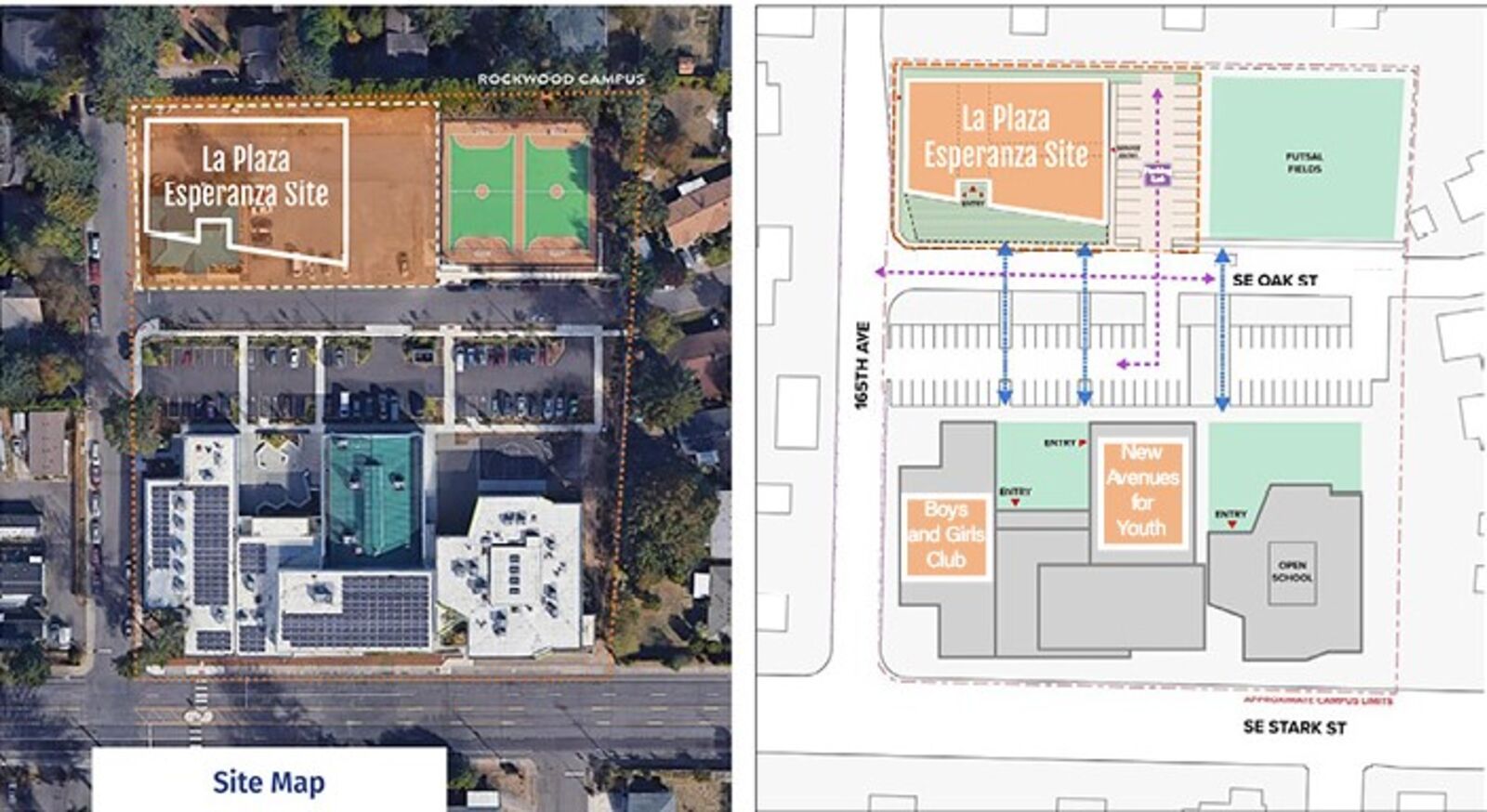 La Plaza Esperanza is situated adjacent to two other influential community organizations, Boys and Girls Club and New Avenues for Youth, who will partner with Latino Network to provide unique programming and services.
