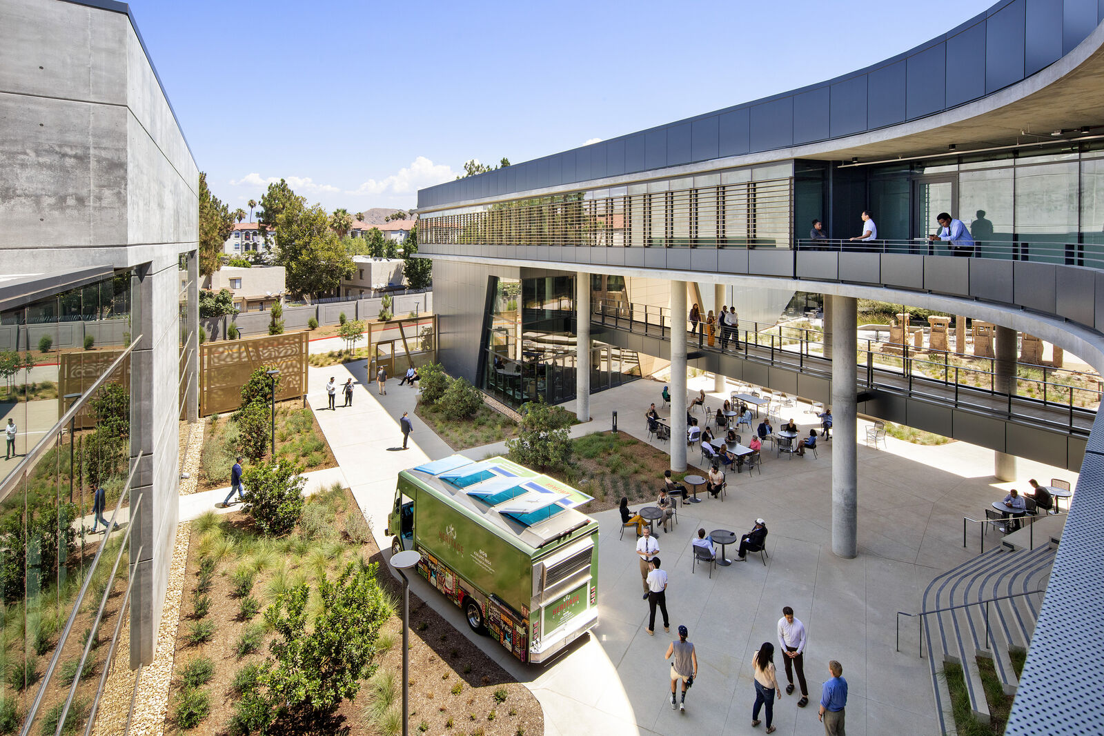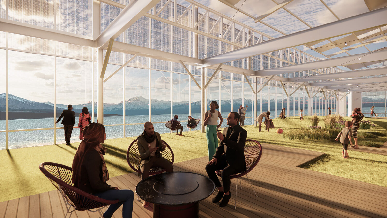 The views from downtown office buildings are some of the best in the city, but only office tenants can enjoy them. District Carbon considers how we can democratize downtown space by making it more accessible. For example, what if the program was flipped to put public amenities and open space on top of the building rather than just the ground floor? Utilizing rooftop decks or mixed-use spaces such as bars/restaurant for PV generation serves double duty by providing shade and screening from the elements.