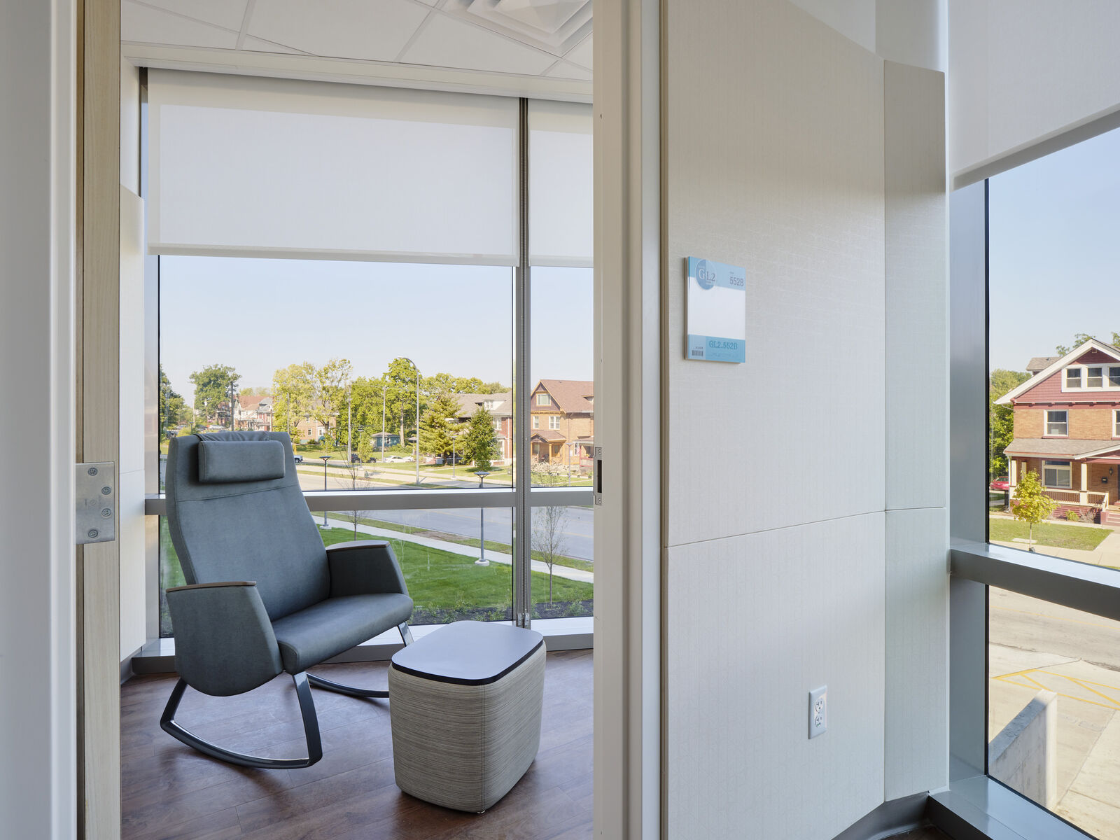 We hear from healthcare staff that sometimes they just need a quiet place to sit alone, take off their mask, decompress, and even cry. The next frontier in empathetic design is ensuring that caregivers have the spaces they need to care for themselves—a consideration that is often well-intentioned but gets compromised somewhere in the design process. Staff support spaces are allocated in a new building’s program, only to be reduced later in exchange for more patient-care space.
