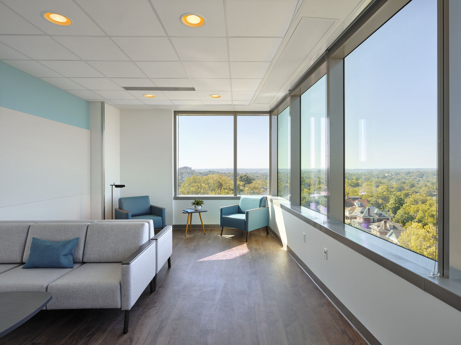 Staff support space was a top priority for the Critical Care Building expansion at Cincinnati Children’s, as their existing space had been sacrificed over the years to accommodate patient growth. Staff have their own lounges and respite spaces on each floor and a private staff garden where they can decompress outdoors.