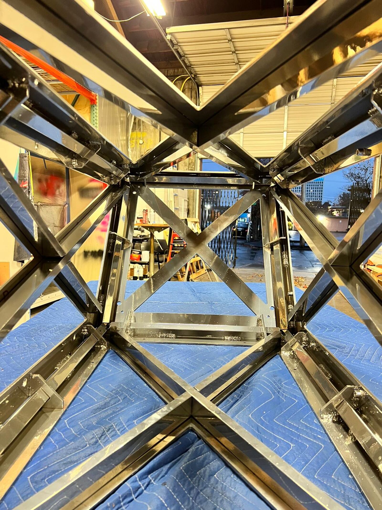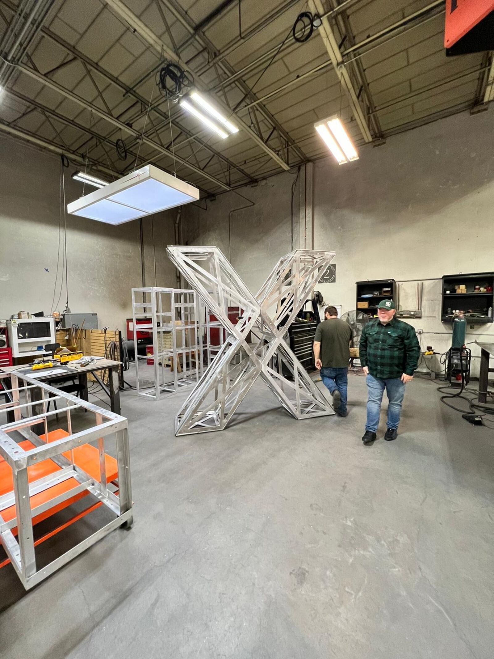 The frame of the X is made of aluminum and designed to be disassembled into 4 modules for ease of shipping from venue to venue across the globe.