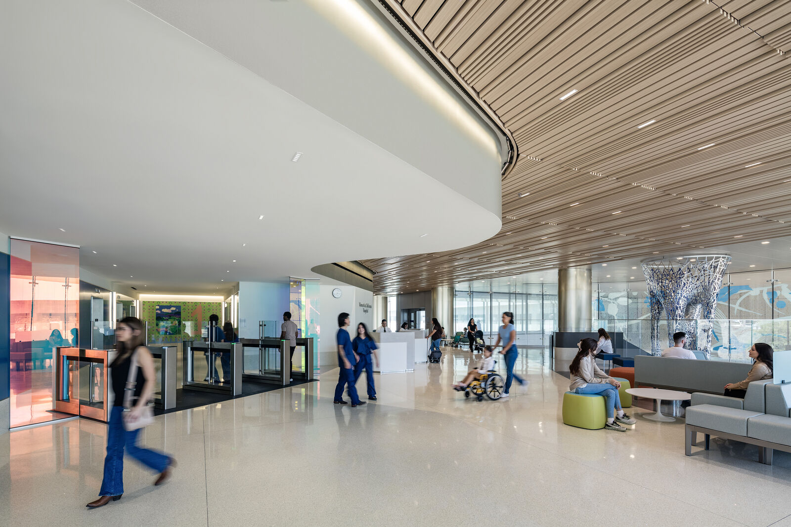 In San Antonio, TX, the new University Health Women’s and Children’s Hospital patient tower lobby features secure entry.