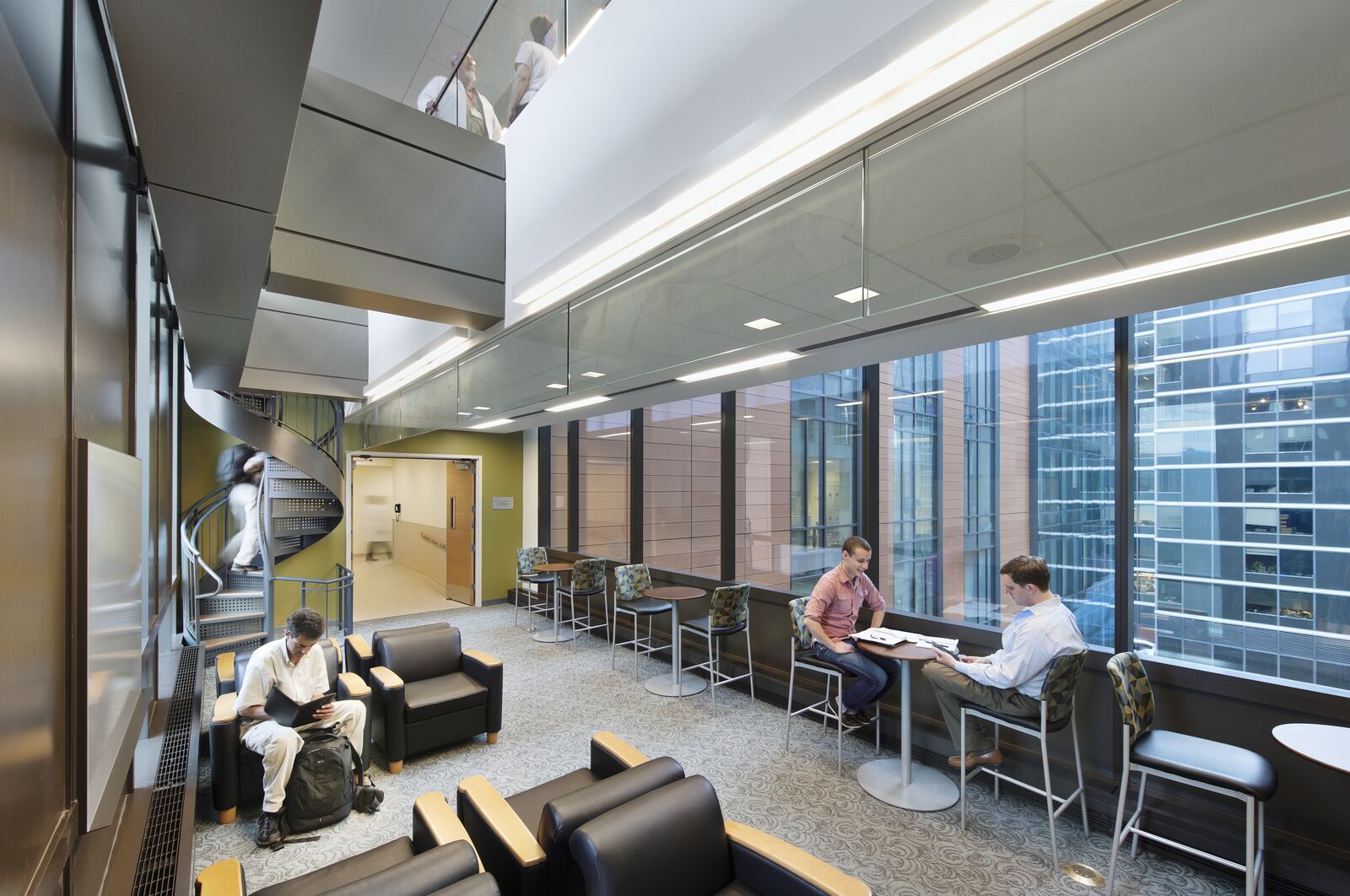 Green roofs are visible from patient and office areas and emphasize Dana-Farber’s commitment to sustainability in the urban environment.