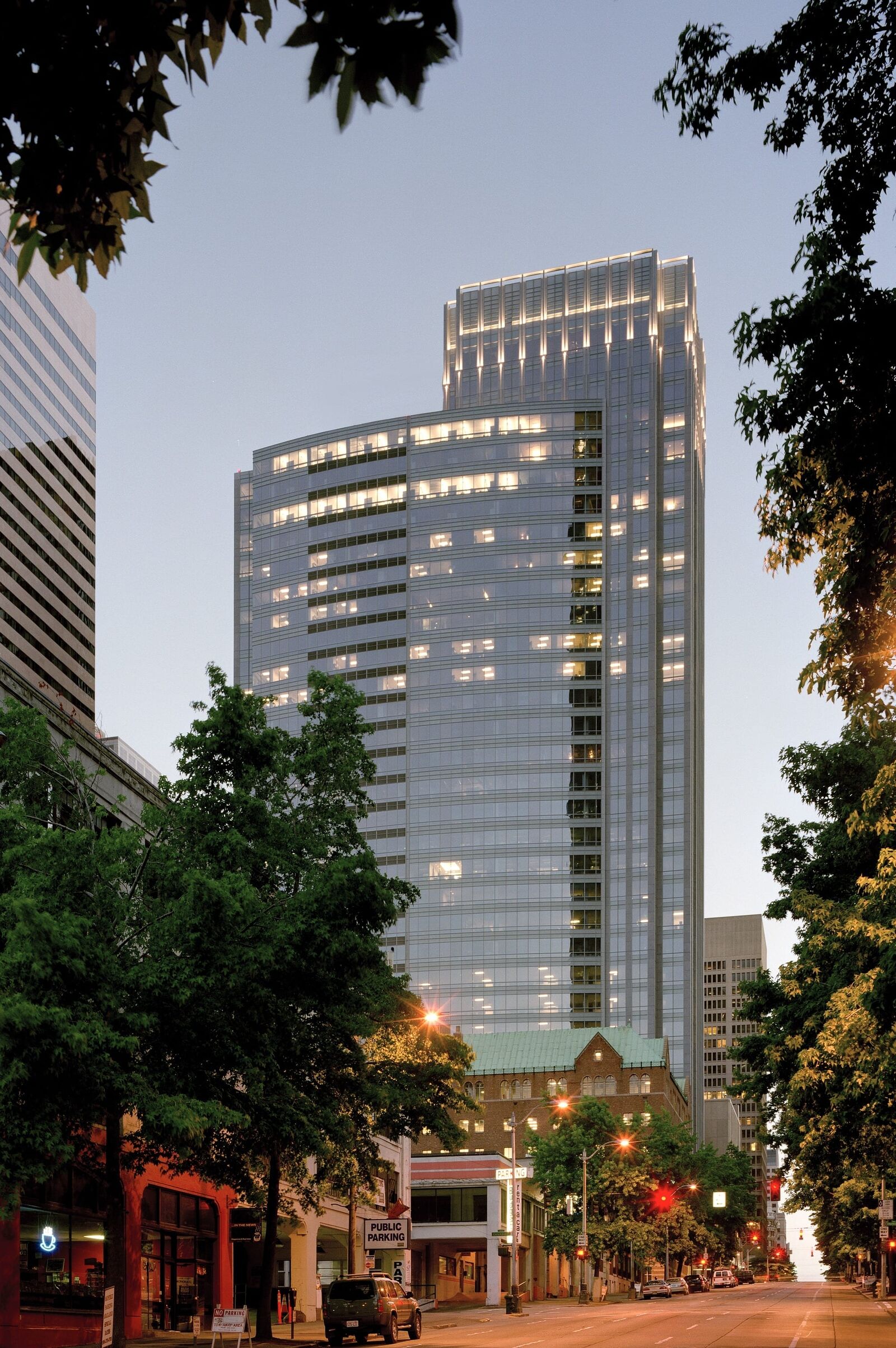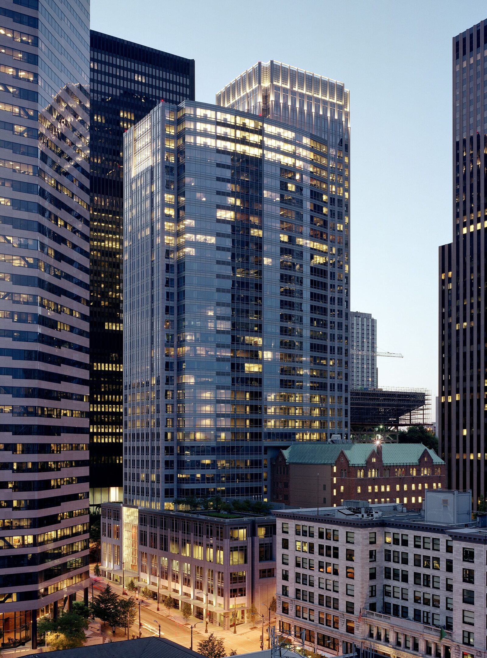 ZGF designed the 38-story, 1,200,000 SF commercial office building with retail and below grade parking. The tower maximizes the size and efficiency of the individual floor plates and creates an architectural expression distinguishable from its taller neighbors in Seattle’s financial district cantilevering over the adjacent historic YMCA. The design is sensitive to appropriate scaling and massing, introducing design features that improve the quality of the project from a civic and marketplace perspective, with minimal impact on the surrounding buildings. The building plan takes advantage of the site’s steep slope by providing through-block connections in both north-south and east-west directions featuring a variety of retail options and amenities, with major building lobbies located on each street bordering the site. The building is LEED Platinum®.