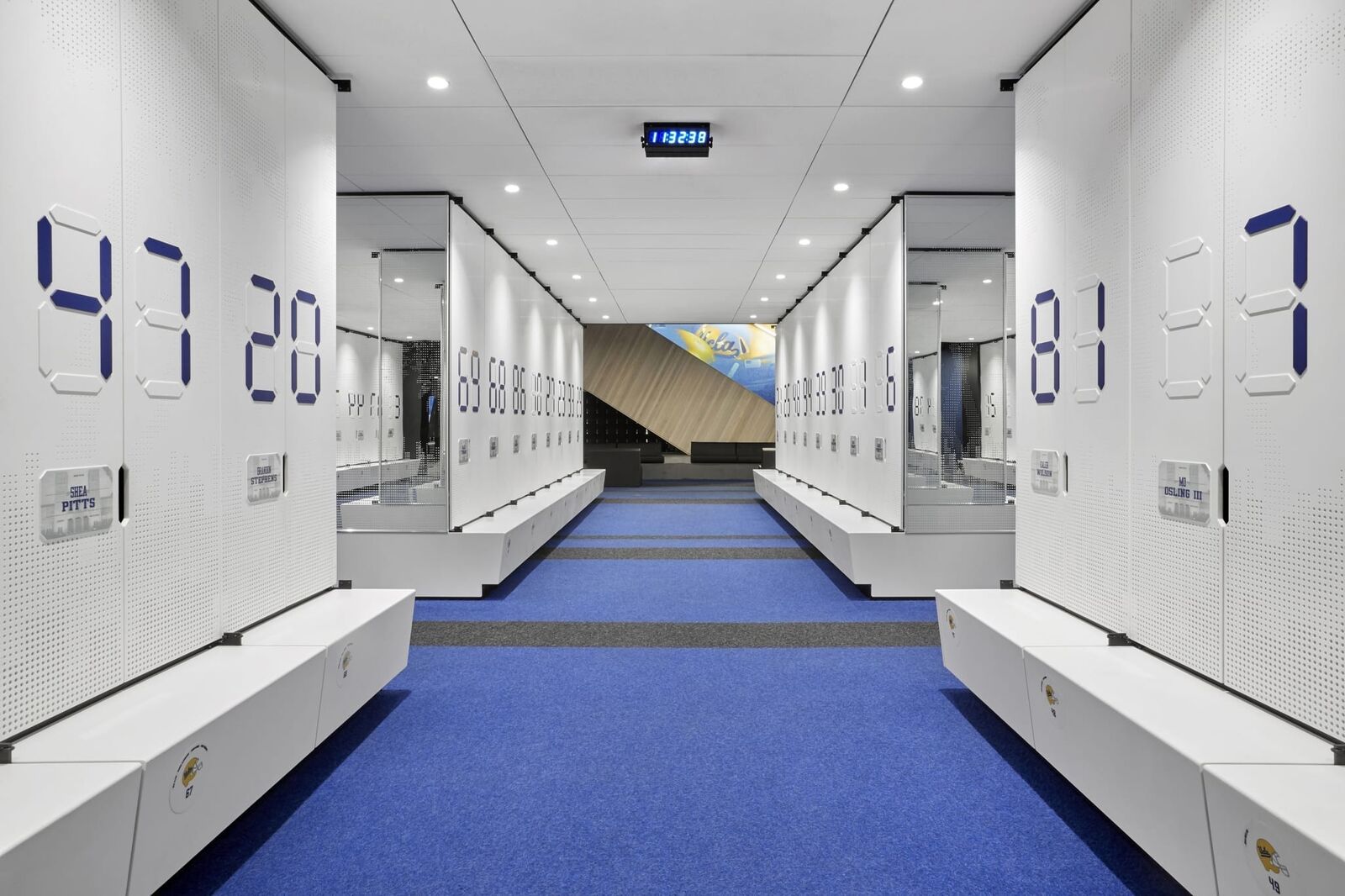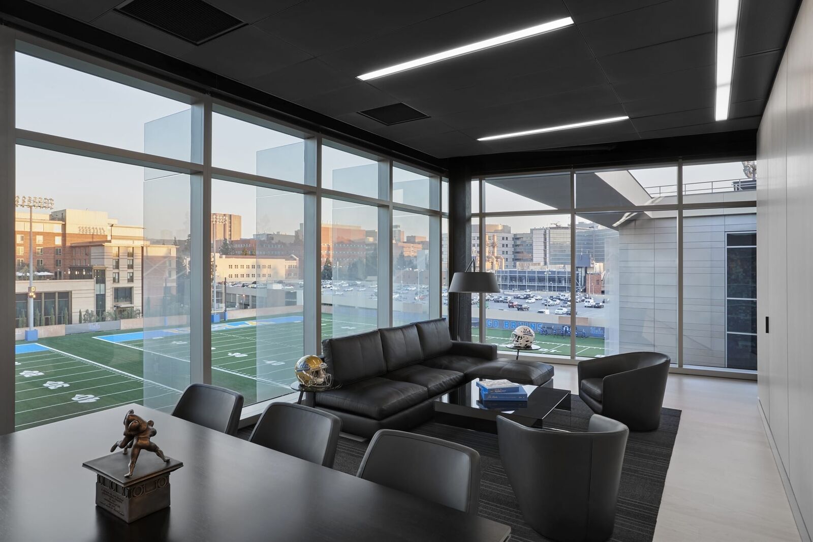 ZGF programmed and designed the Wasserman Football Center, a state-of-the-art complex representative of the University’s football heritage that was designed with the intent of raising the caliber of their athletic program, promoting player development, and driving the recruitment and retention of both players and coaches. The building co-locates football staff and student-athletes on the campus for the very first time and is comprised of offices for coaches and support staff, strength training facilities, team meeting rooms, a 160-seat auditorium, locker rooms, training and rehabilitation areas, equipment management facilities, and player amenity spaces, such as a player’s lounge, a barbershop, and other casual lounge areas to encourage off-field bonding and a sense of camaraderie.
