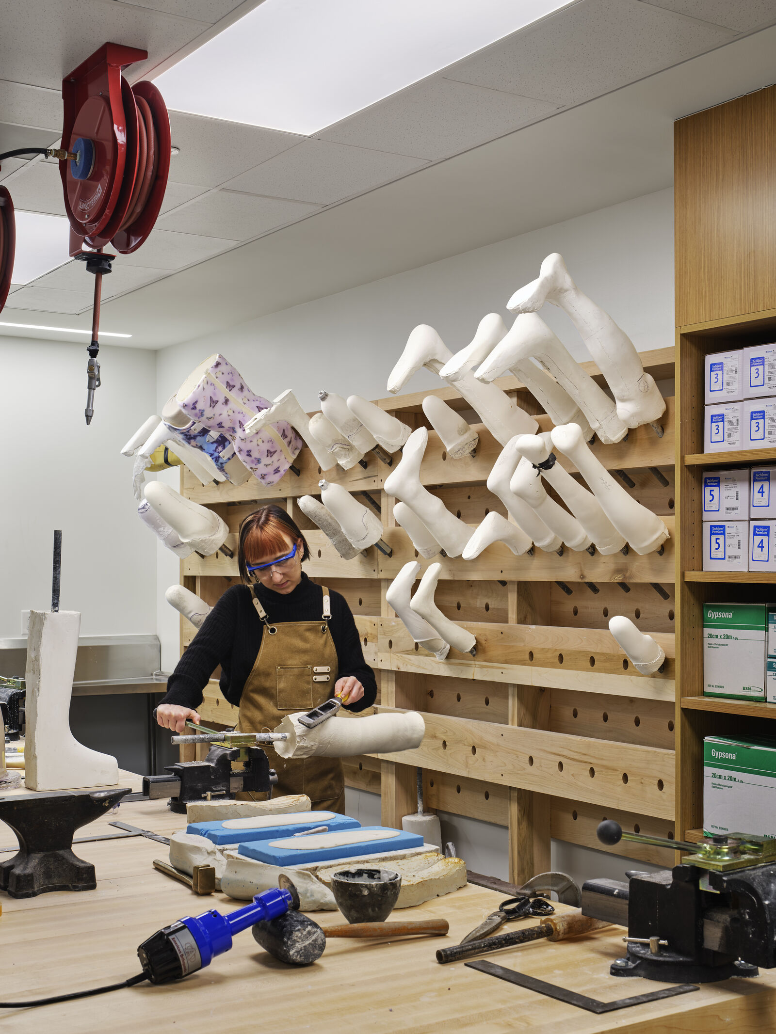 A robust Prosthetics and Orthotics Clinic includes a fabrication lab where patient-specific devices are designed and created on site.