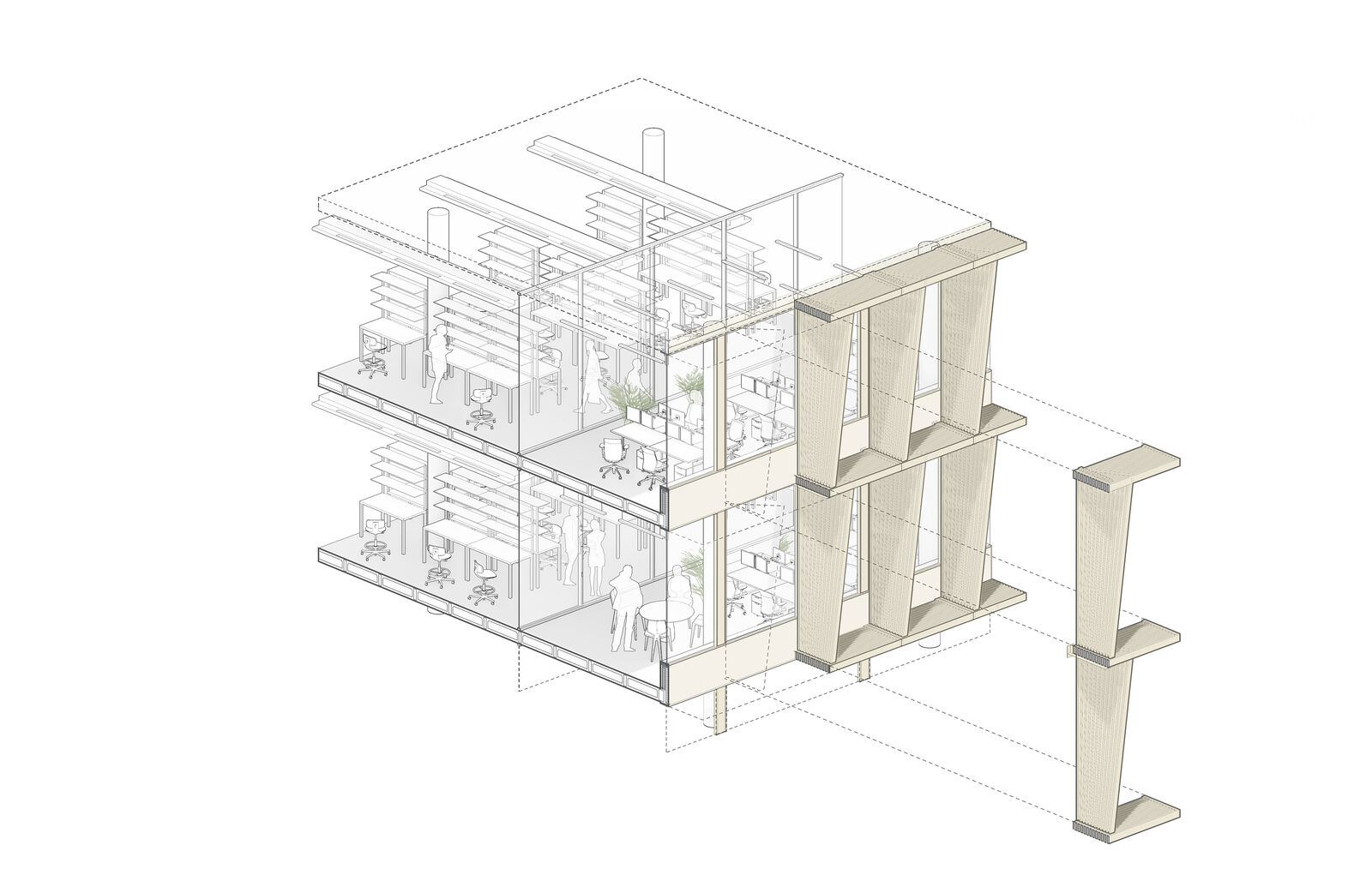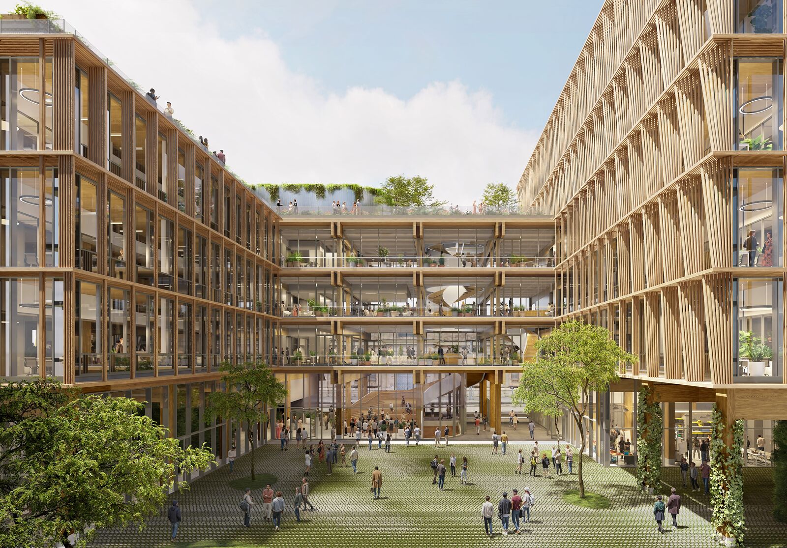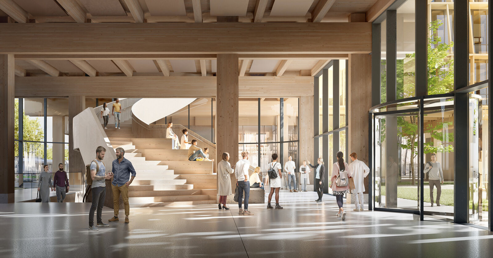 The high-performance mass timber building envelope and mechanical systems will significantly reduce both embodied and operational carbon. This reduces the amount of ventilation air required, and therefore energy demand, by over 60%. Temperature and ventilation will be controlled by MEP systems that utilize 100% outside air and hydronic heating and cooling. The building envelope also features operable windows in collaboration and office areas to provide natural ventilation. The exterior sunshades blunt the intensity of the Mediterranean sun while simultaneously harvesting daylight deep into the building. Inside the labs, zoned climate controls and chilled beams reduce energy loads while ensuring that research teams will conduct their work in comfort.
