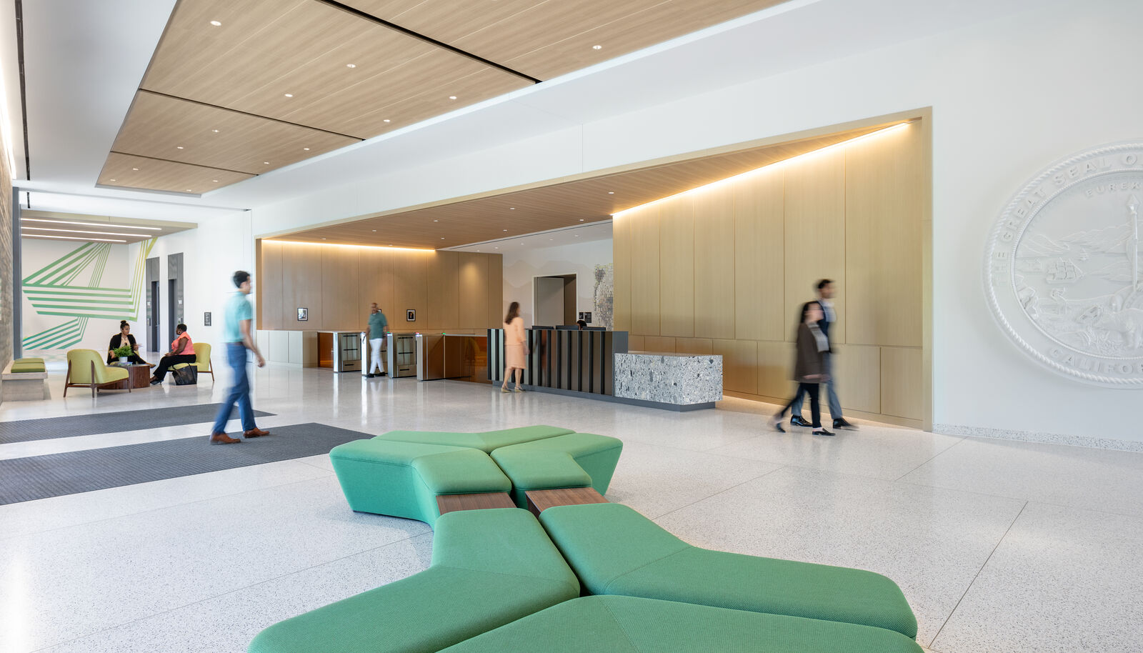 The interior finish selections are inspired by the natural colors, patterns, and textures of the Sacramento River Basin. The soft hues and subtle textures maintain a timeless quality that will serve the buildings over their lifespans, while being visually interesting for employees and visitors day-to-day.