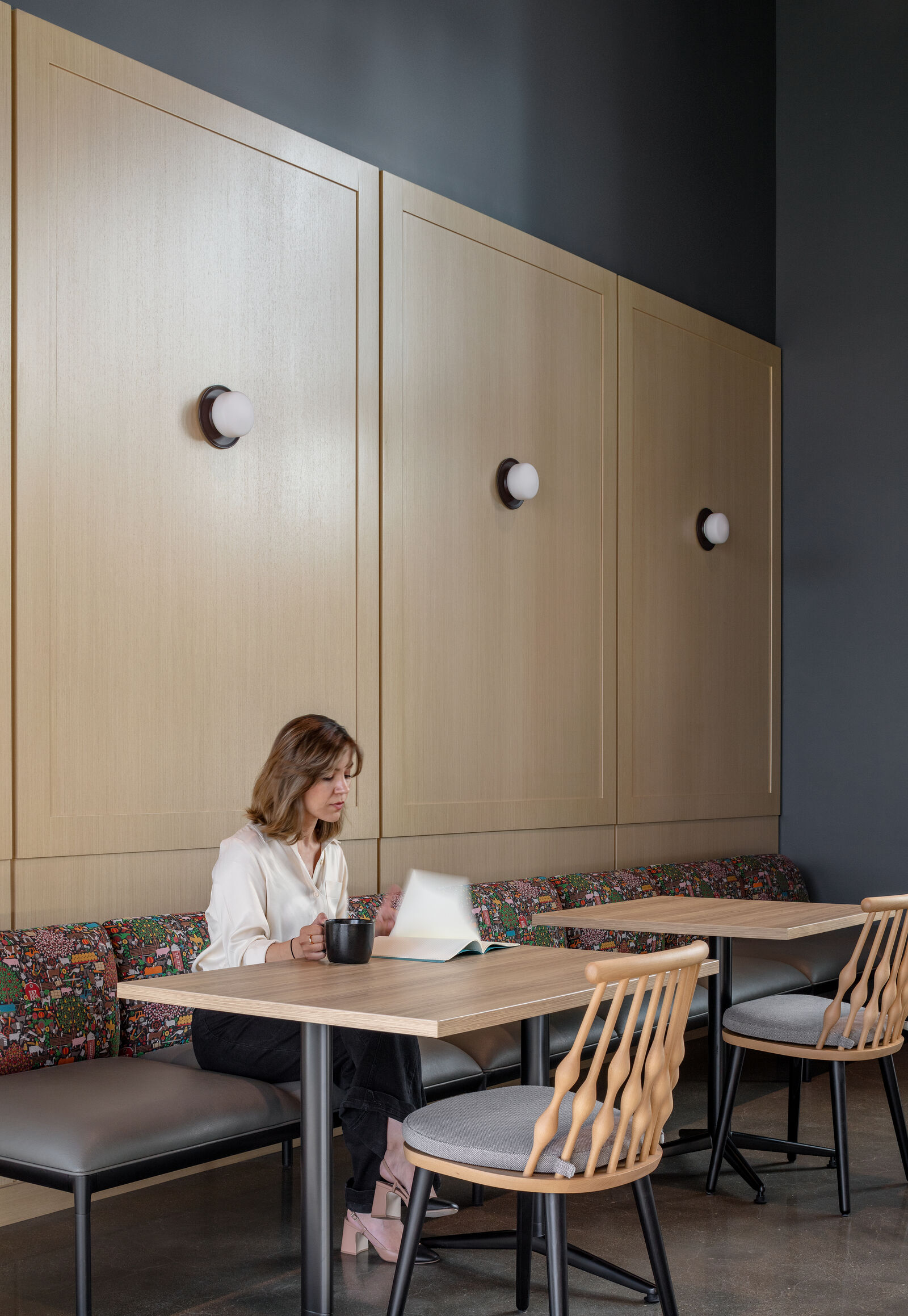 Historic train stations, existing bridges, and vibrant murals from around the River District informed various layers of the design. This includes the façade, the interior design, and the environmental graphics.