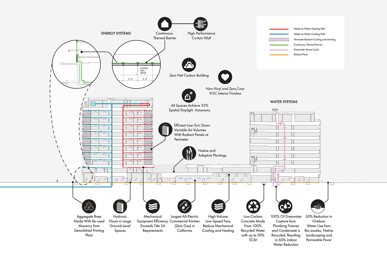 The State of California is taking some of the boldest steps in the U.S. toward decarbonizing buildings across the state and they are using their own projects as proof points. The May Lee State Office Complex, a new home for 5,000+ employees in the state capital, is the first major step toward realizing the City of Sacramento’s vision for the River District. The complex is the largest all-electric, zero carbon workplace campus in the U.S., providing a case study for how a campus of this scale and complexity can be decarbonized by a holistic approach to minimizing its carbon footprint.
