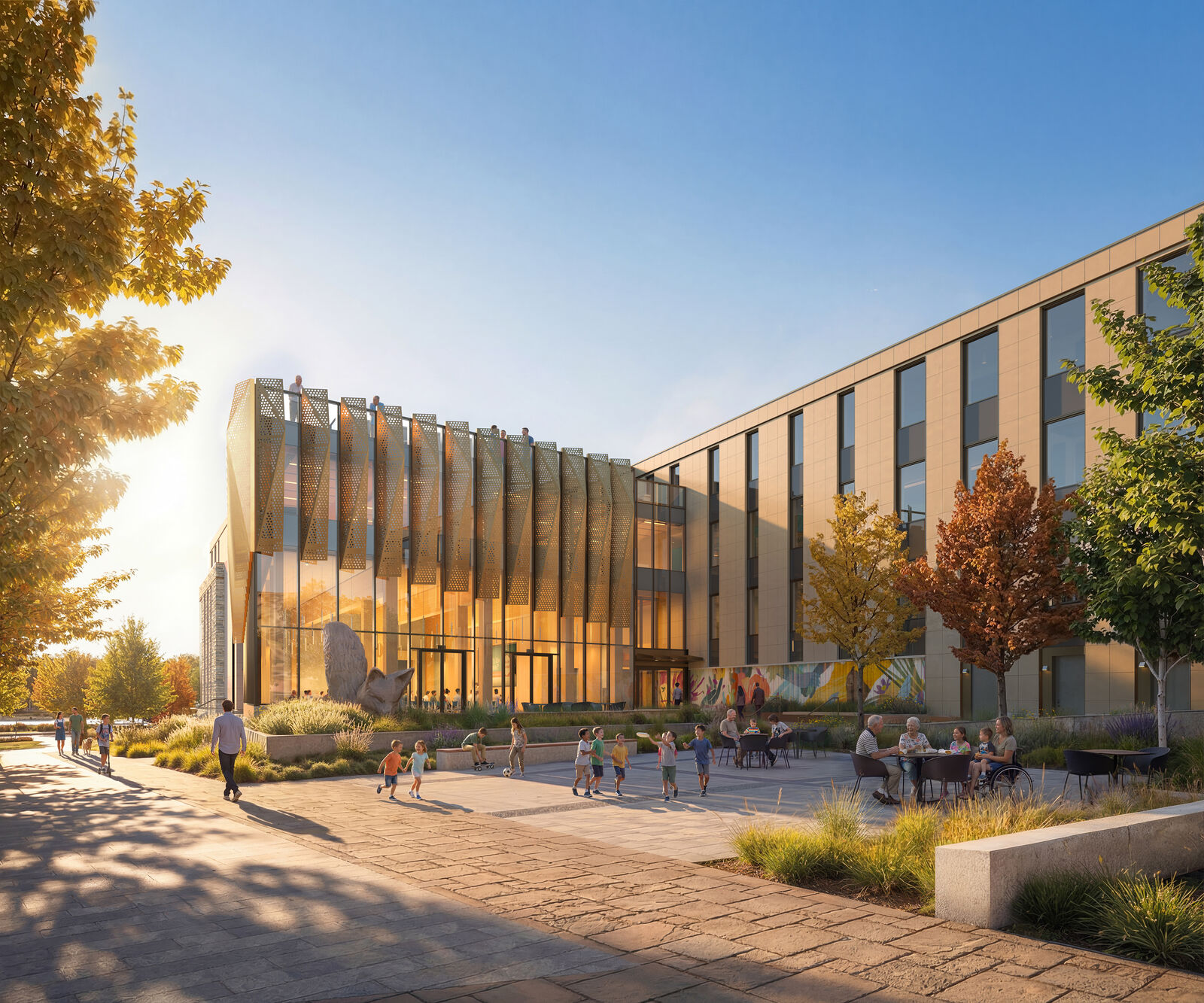 The adapted and expanded 117,000 SF building will anchor the new campus, nearly doubling the square footage of the existing structure. It is designed to create a welcoming and connected environment for community members to access most city services in one convenient location, a recurring desire heard throughout years of community engagement.