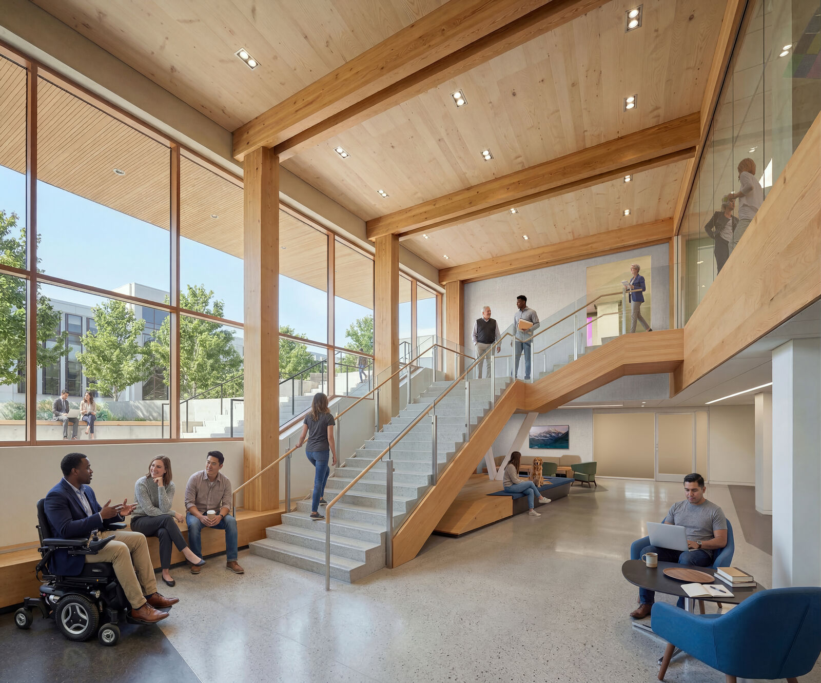 Insights surfaced during stakeholder workshops emphasized the importance of variety, well-being, and functionality. Natural materials and daylighting will create warm and welcoming spaces for employees and the community.
