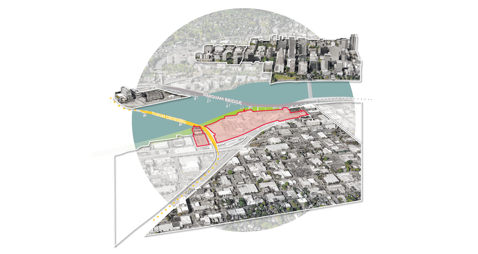 Historically, it was separated from nearby neighborhoods by train tracks and Highway 99E, giving it a unique and irregular layout that followed the river. Development in the area began in the 1800’s with industrial activity such as barrel-making and river transport. In the 1860s, railroads were added to support Portland’s growth. Between 1910 and 1929, Portland General Electric built the Station L power plant (now mostly gone except for OMSI’s Turbine Hall), which used wood debris as fuel and reshaped the land. By the 1990’s, land uses began to shift from power generation and heavy industry to public and institutional uses. Major developments included ZGF-designed projects including the OMSI Museum facilities in 1992, Portland Opera’s Hampton Center in 1996, and PCC’s CLIMB Center in 1998. By 2015, the Tilikum Crossing Bridge and nearby OMSI MAX transit station were completed, laying the groundwork for a new kind of neighborhood, one built around public transit featuring a more diverse mix of housing, corporate facilities and public spaces.