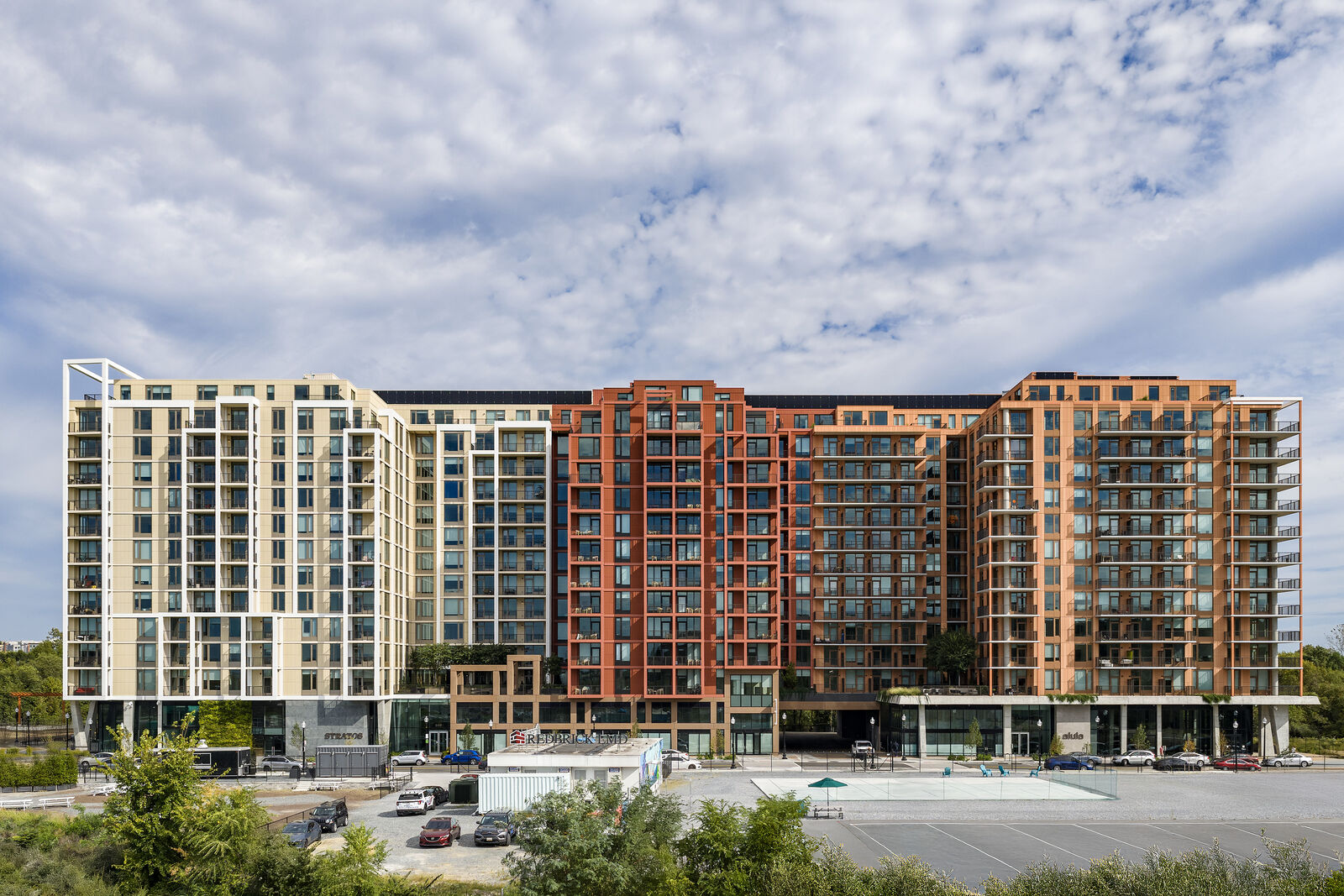 Located on previously undeveloped land at the foot of the Frederick Douglass Bridge, the Bridge District connects the established Capitol Riverfront neighborhood with the communities south and east of the Anacostia River. Although Southeast DC is home to 25% of DC’s population, it has been historically overlooked for investments in housing, healthcare, and services that have benefitted other areas of the District. Phase One, consisting of three distinct towers; Stratos, Poplar House, and Alula, aims to bridge this divide by establishing new housing and retail responsive to the community’s needs and wants. Seventy-eight of the building’s 757 units are affordable and rented to those making no more than 60% of the area’s median family income. In response to the community’s desire for greater housing options for families, 29 of the units have three bedrooms. Recognizing that Phase One serves not only its own residents but the greater Anacostia neighborhood, the building maximizes the amount of ground-floor real estate dedicated to retail and community uses. The project aims to attract local retailers to expand economic opportunity and ground the new development in the surrounding neighborhood.