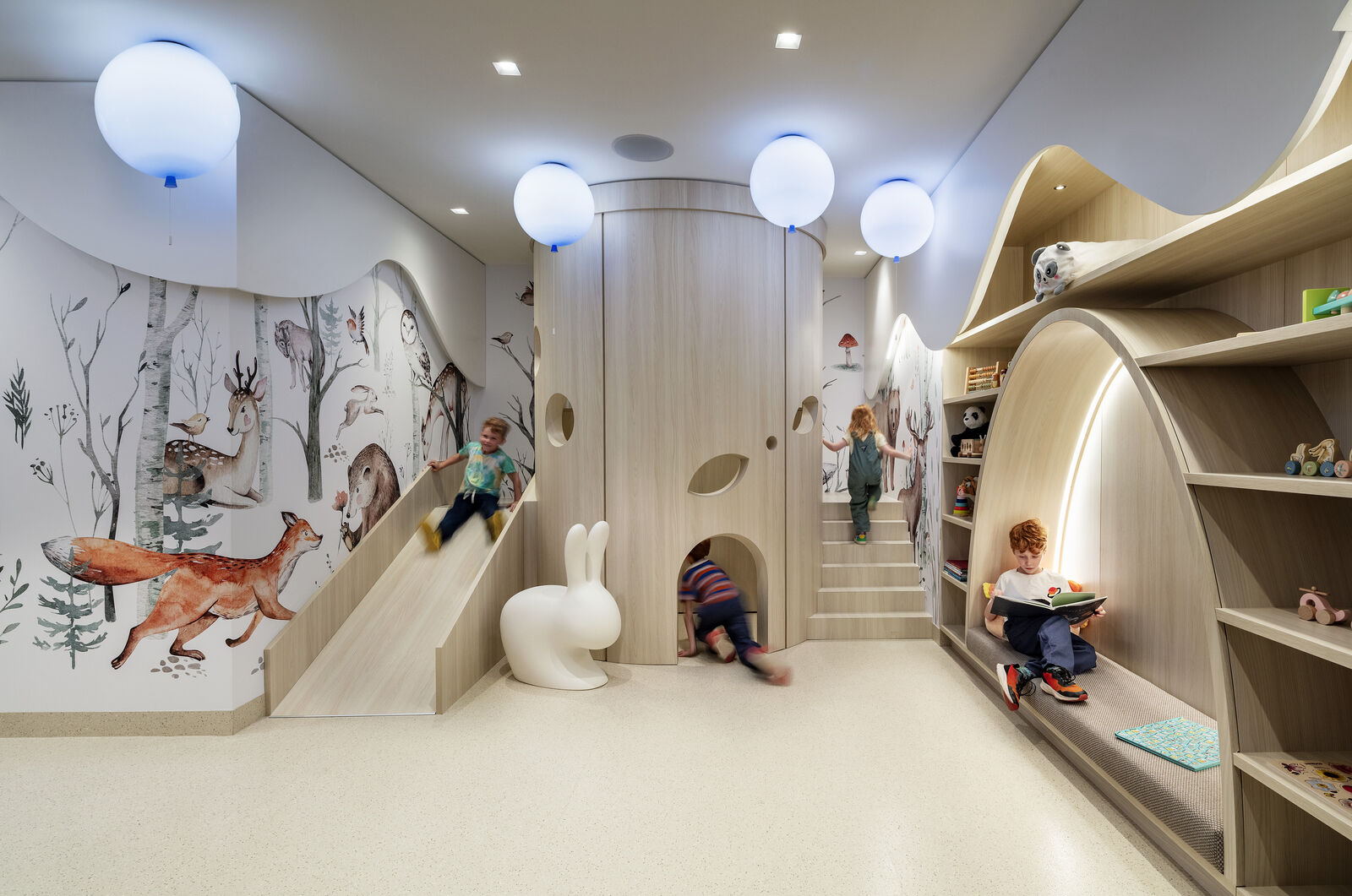 Designed with families in mind, a dedicated children’s playroom offers a safe, welcoming space for little ones, while parents can enjoy the gym or take a meeting.