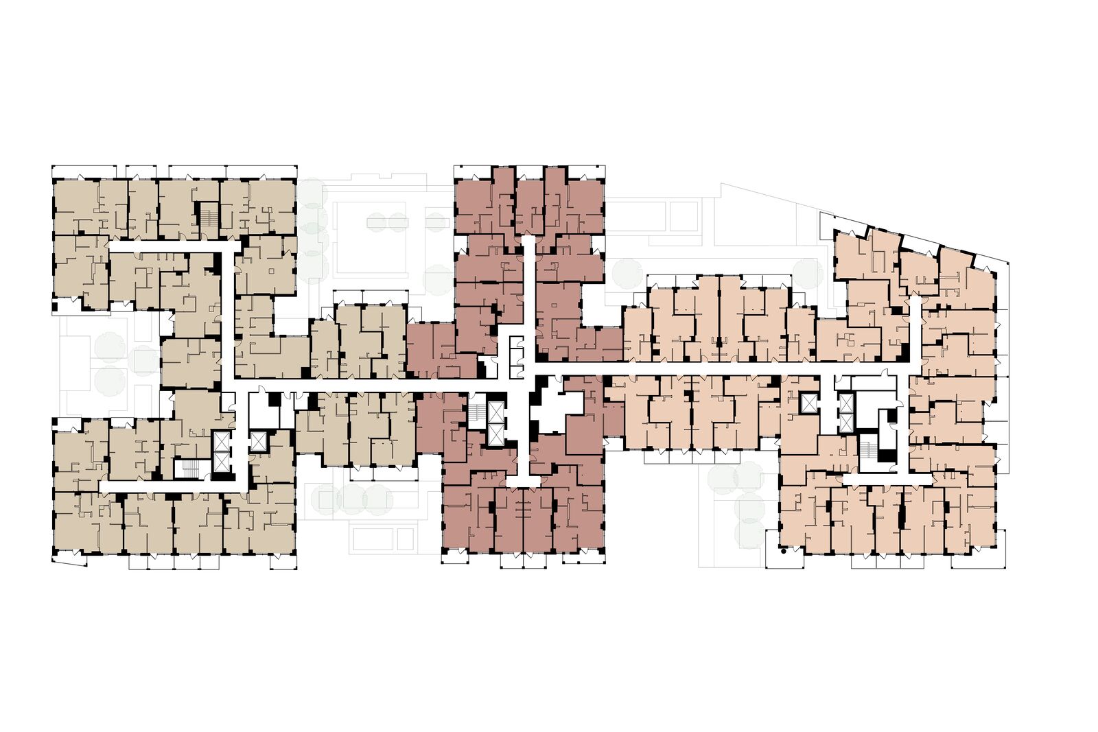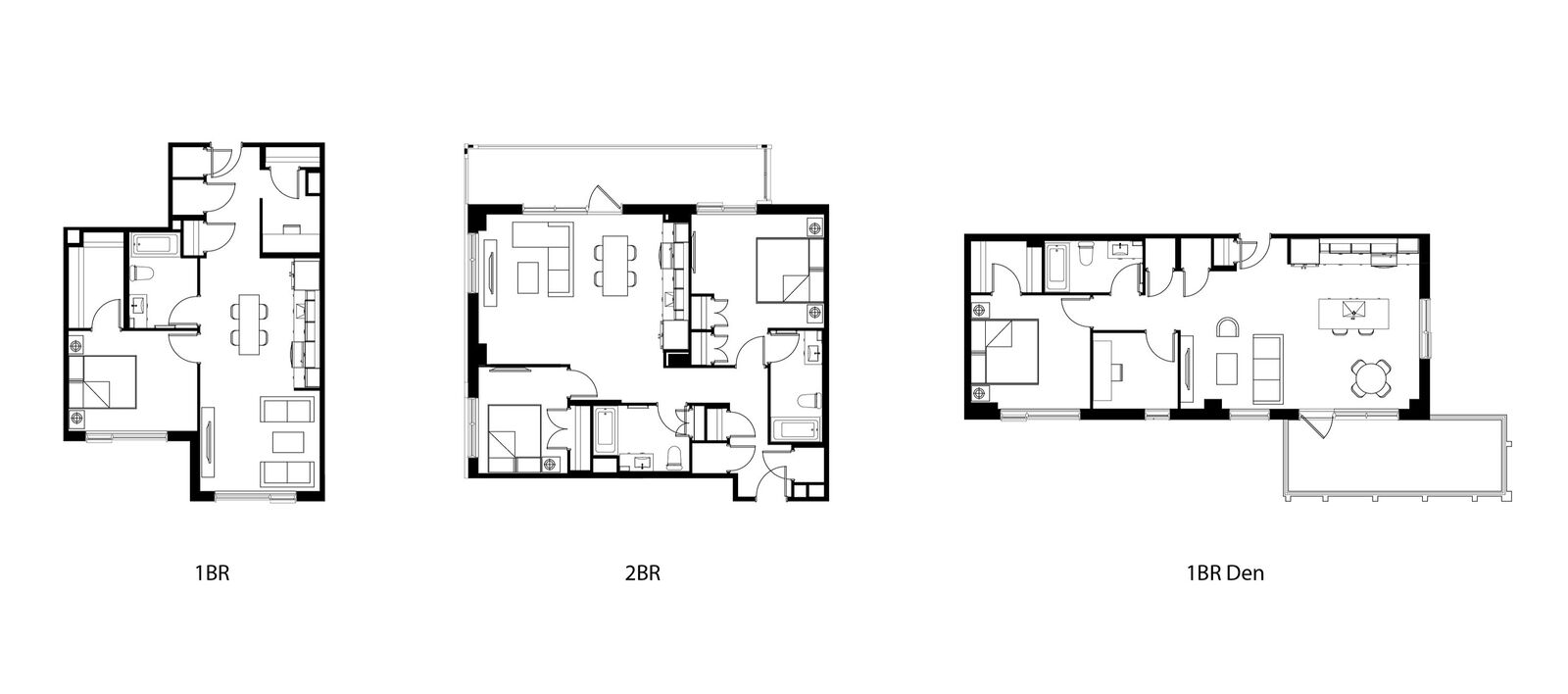 Each building features distinct unit layouts and finish palettes which are tailored to attract a diverse range of residents to the neighborhood.