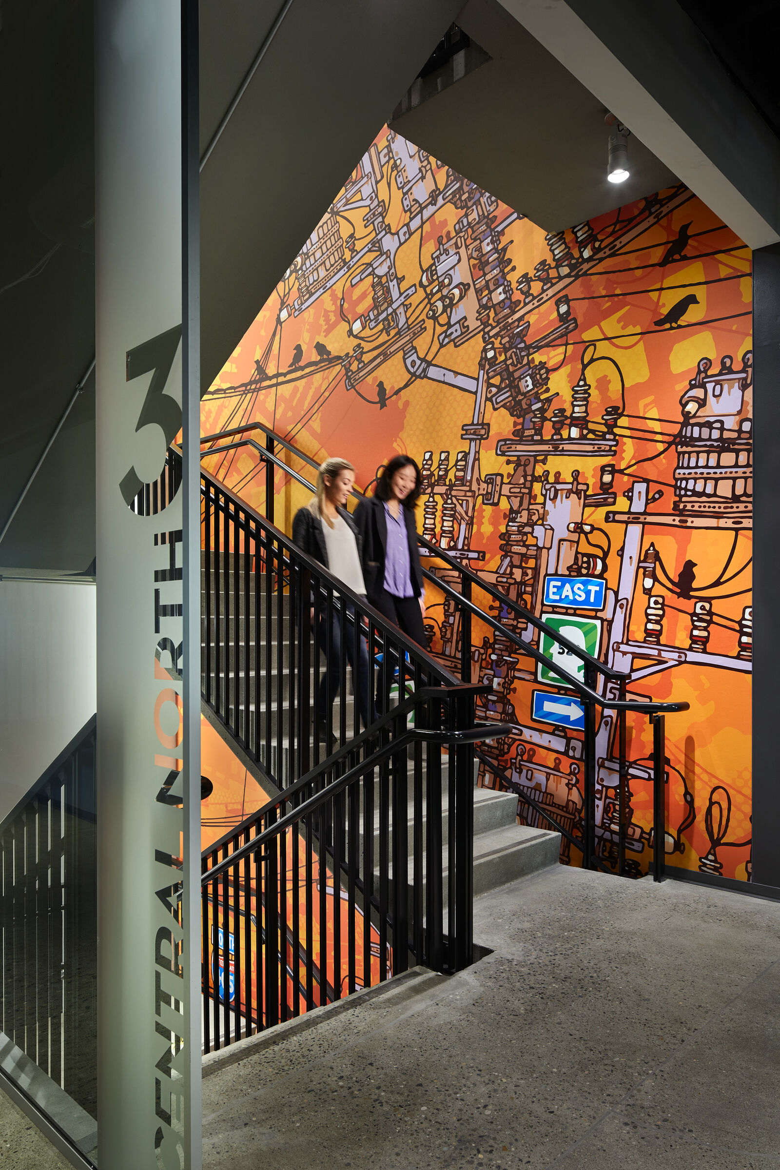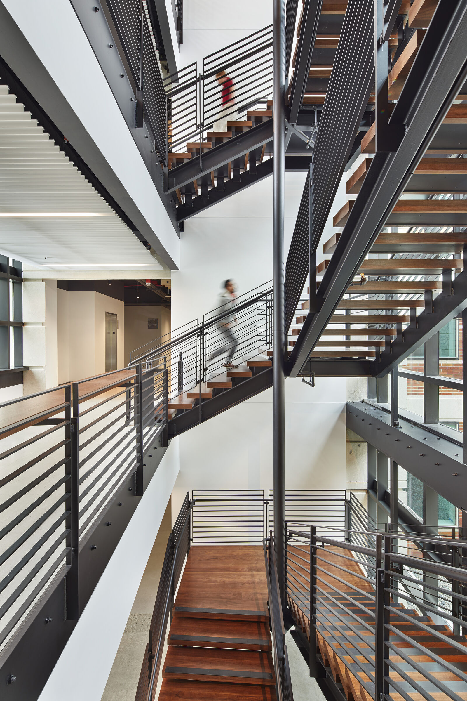 A communicating central stairway encourages movement and spontaneous collaboration.