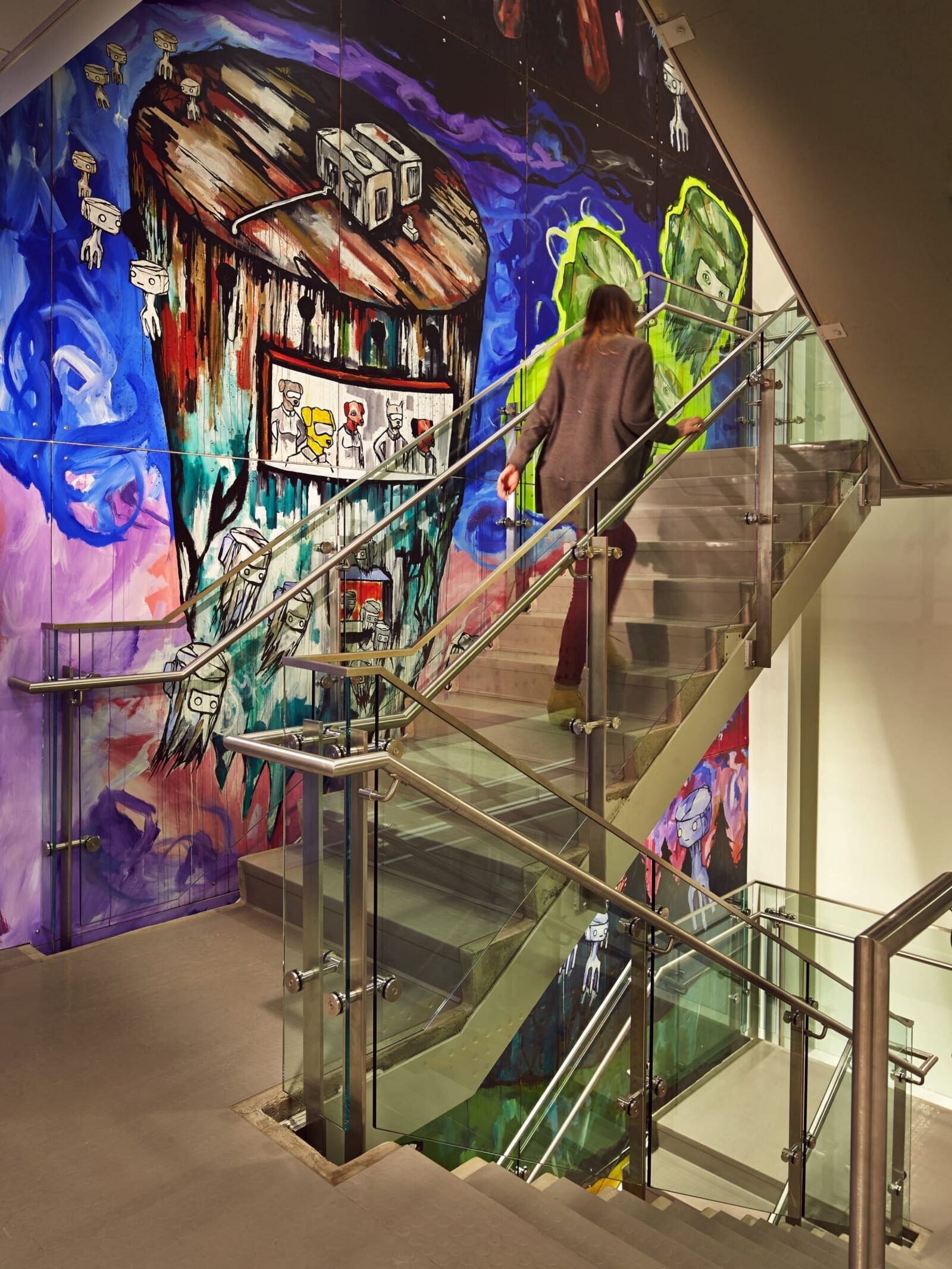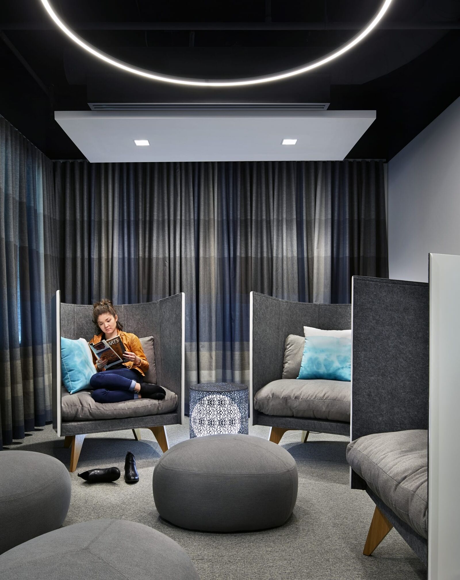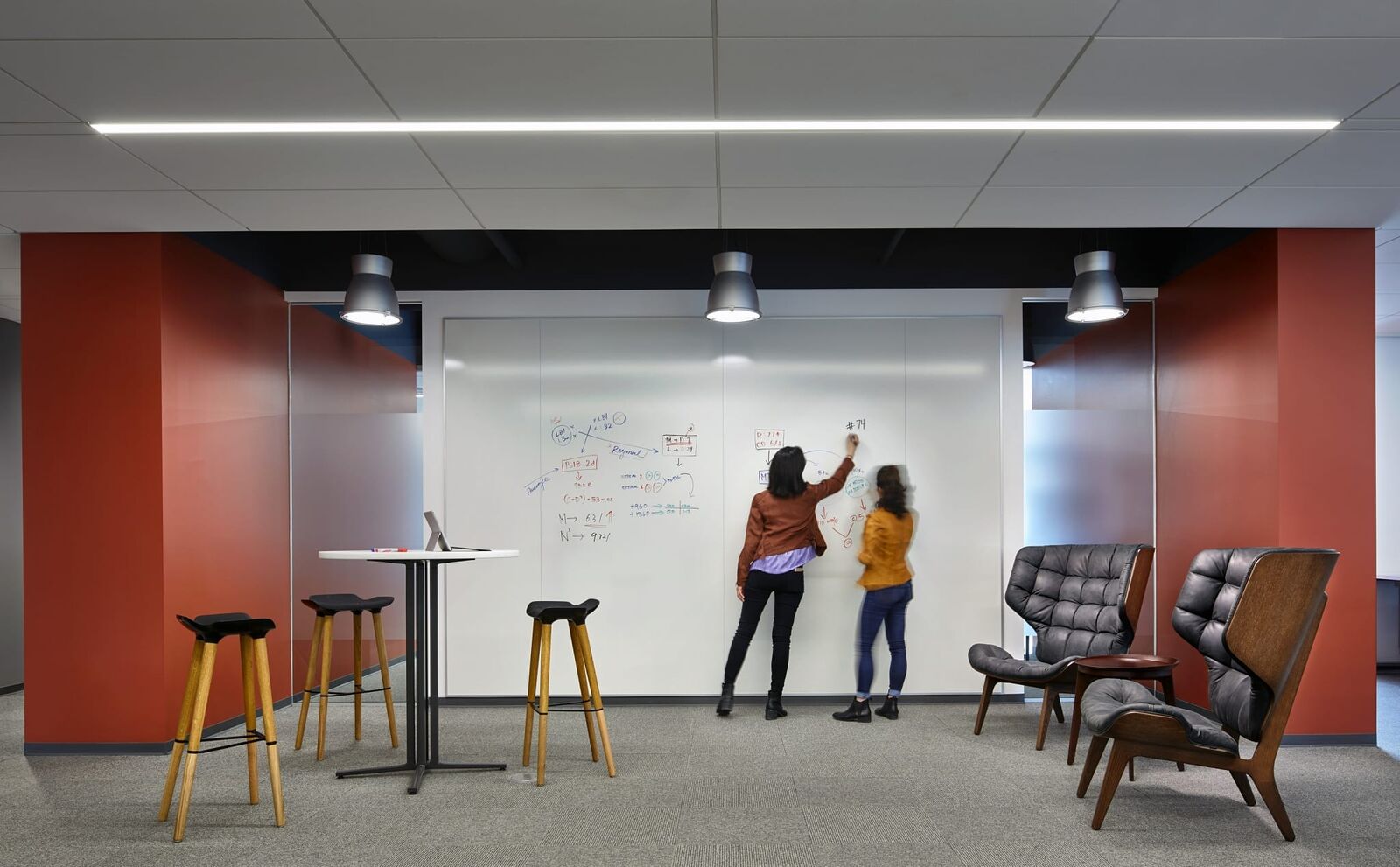 ZGF has applied new and evolving workplace standards to more than a million square feet which includes open plan offices organized into team-based neighborhoods supported by meeting rooms, phone rooms and quiet rooms that support individual heads-down work. Common gathering spaces throughout buildings that foster cross-team and cross-disciplinary collaboration include garages for large gathering and recreation, hubs which provide food and drink, nodes with comfortable furniture that provide impromptu gathering spaces, lounges and relaxation spaces, and a signature lobby and central feature stair.