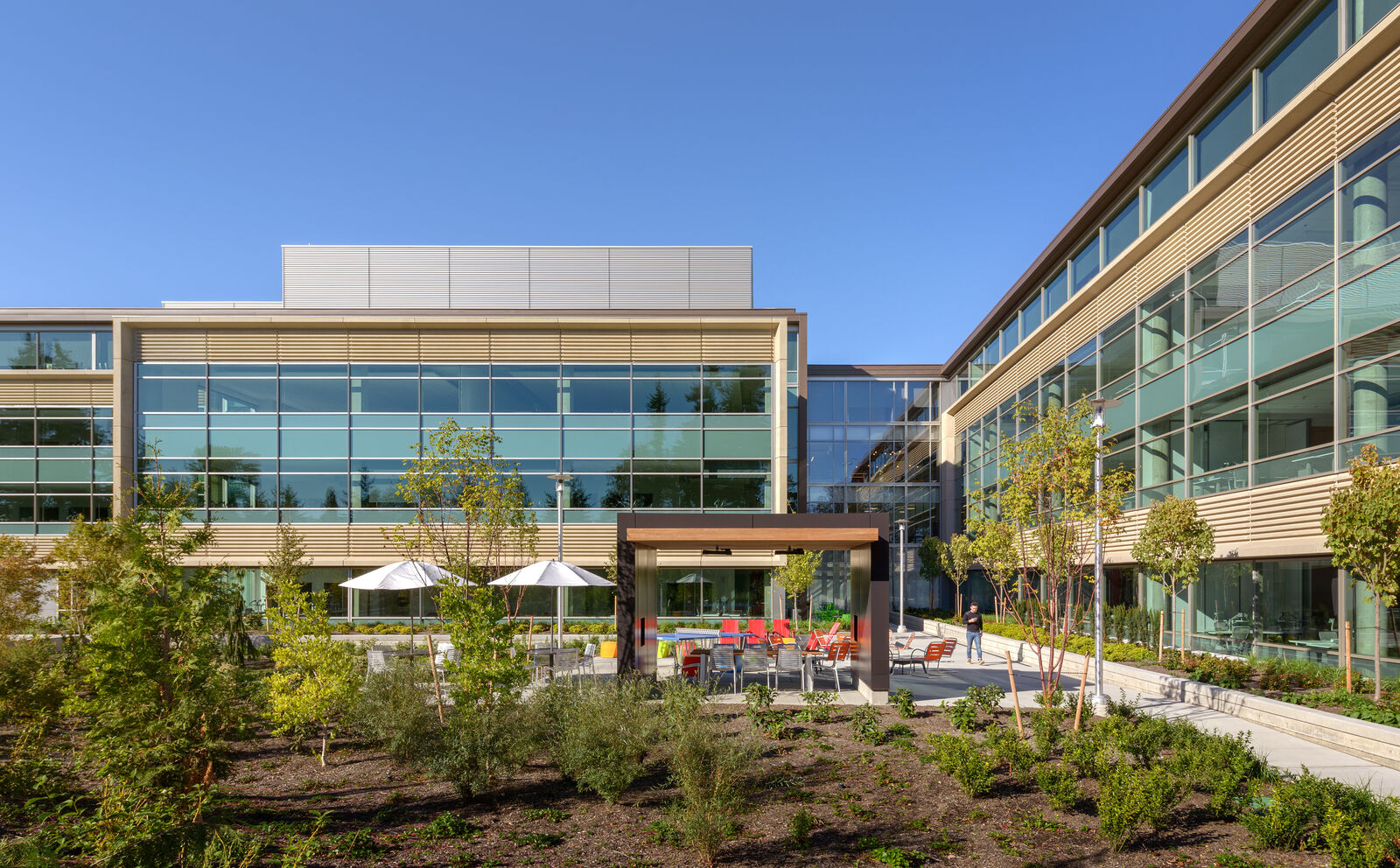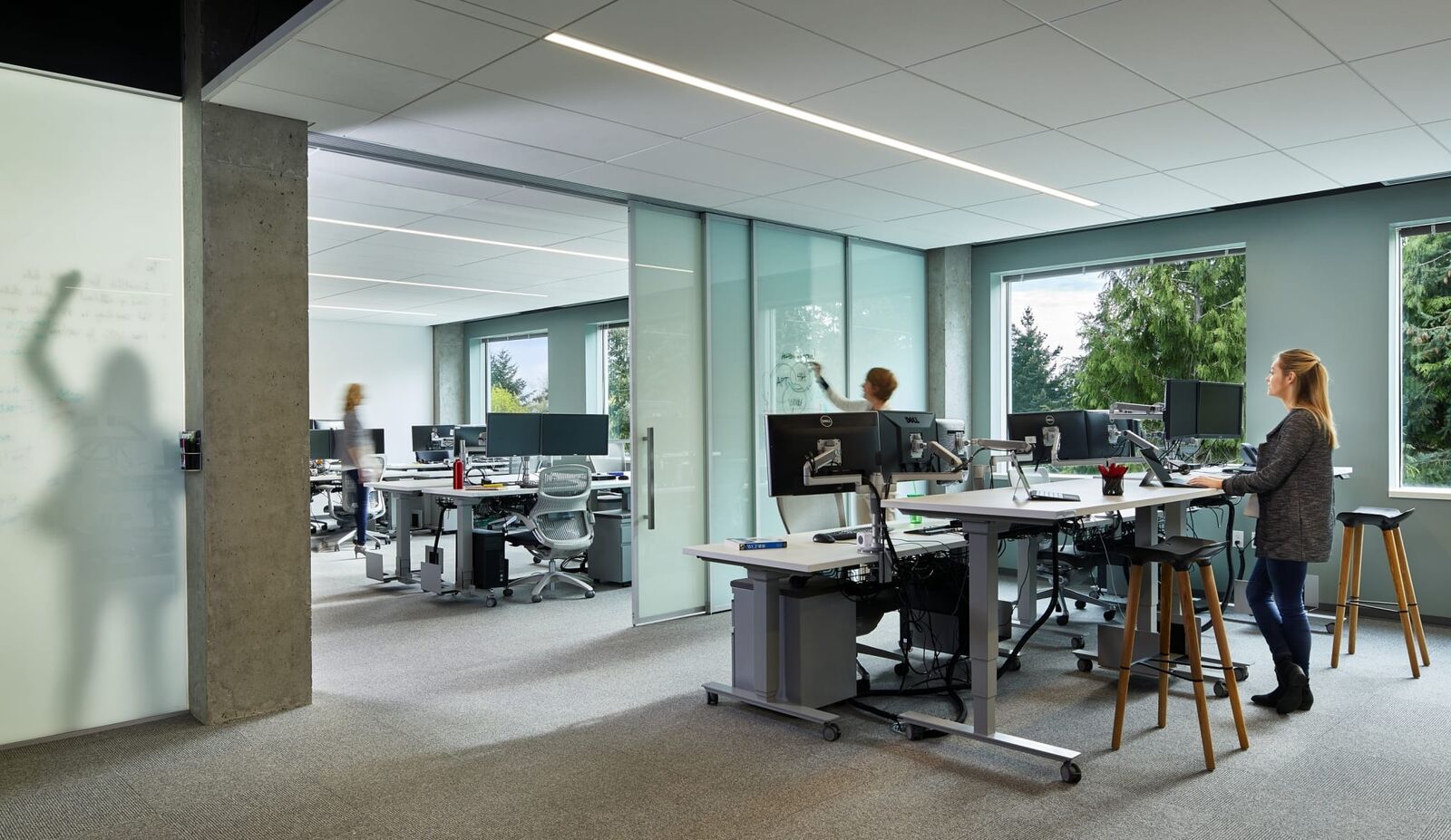ZGF has designed office space for this Redmond, Washington technology company for over 25 years, including new campuses and buildings and significant renovations to existing buildings as their workplace evolved from closed office to open plan. For years, a hallmark of the company was the promise of a private office to prospective and current employees. As high tech industry shifted toward an open plan workplace to increase collaboration and innovation, ZGF participated in the research and exploration of new workplace space strategies. This effort addressed how work styles have evolved, how the multi-generational workforce is functioning, and what adjustments need to be made to meet individual and team needs as well as overall client business goals.